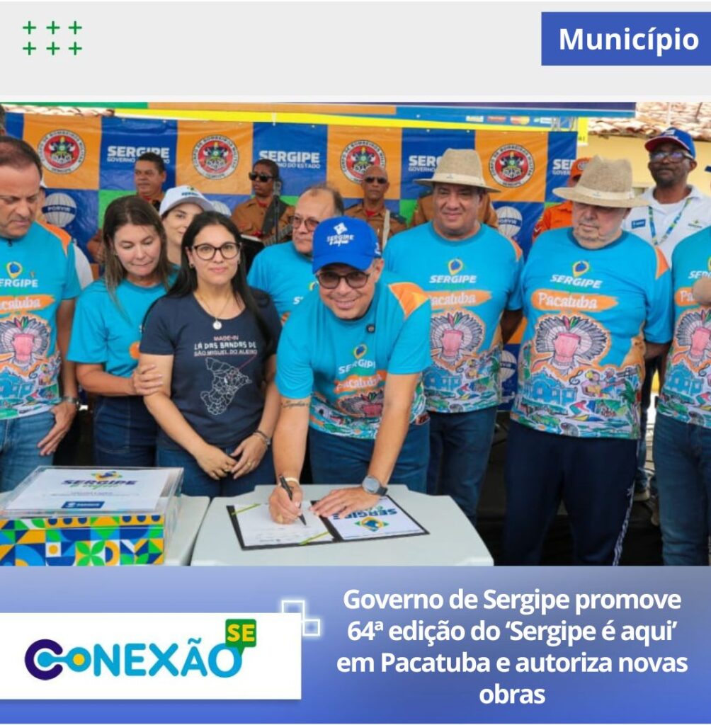 O município de Pacatuba, no baixo São Francisco sergipano, recebeu, nesta sexta-feira, 9, a 64ª edição do programa ‘Sergipe é Aqui’, iniciativa do Governo de Sergipe que aproxima a administração pública da população por meio da oferta de serviços essenciais. A ação, primeira edição de 2026, foi realizada no entorno do Centro de Excelência Dr. Leandro Maciel e contou com a presença do governador Fábio Mitidieri, autoridades, gestores municipais e moradores da região.