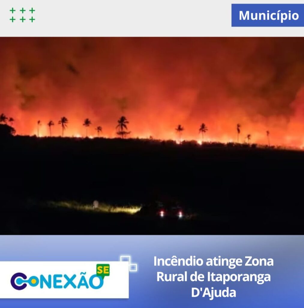 Um incêndio em vegetação foi registrado em uma fazenda localizada no Povoado Estancinha, no município de Itaporanga D’Ajuda, na noite dessa quinta-feira (8). A informação foi confirmada pelo Corpo de Bombeiros.